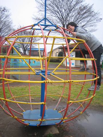 公園には、これまた時代逆流な遊具・グルグル地球がッ!!