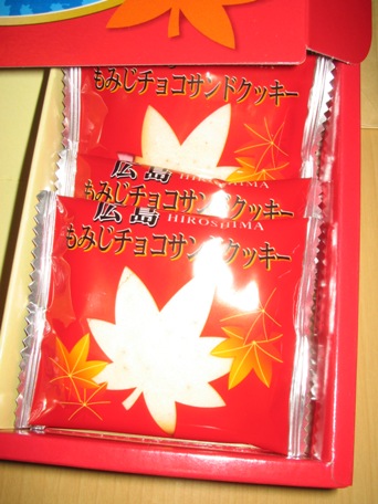 関係ないが、一緒に飲んでた茅ッPからもらった広島土産「広島もみじチョコサンドクッキー」。もみじ型クッキーかと思いきや、それは名ばかり。完全に四角形であることに、ちぃっと愕然。