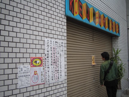 移転直前、締められたシャッターの前には必ず誰かが佇んでいた。いつもは昼ごろから開くシャッターが、夕方になっても夜になっても閉まったまま。「おや?」と思うのも当然だろうな。高円寺2年生のボクも閉まったままのシャッターを見たときは、ショックだった。店の人と喋ったことなんて、一度もないのに。